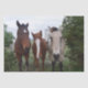 Fotografados são quatro cavalos de raças diferentes em um tiro fotográfico.