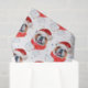 O Bulldog Dog Breed Christmas apresenta uma aquarela de um Bulldog Inglês com um Chapéu Vermelho de Papais noeis e um cachecol vermelho de Natal.