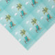 Papel tecidular de praia numa cor aqua bonito. Design tem uma palmeira e uma cadeira de praia.