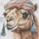 pintura aquarela de camelo com chapéu de inverno de lã rosa, no estilo do natal