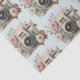 Tissue paper with a vintage styled camera decorated with flowers. Pastel colors of pink, cream and green.