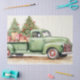 Papel De Seda Caminhão Verde Antigo com Pinheiros Festivos e Pre