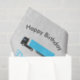 Ótima ilustração de um brinquedo de caminhão azul semirreboque. Perfeito para rapazes e raparigas que adoram caminhões-caminhões, caminhões-caminhão, caminhões-caminhão ou fascinados com transporte e veículos. Papel de tecido de aniversário ideal, simplesmente personalize detalhes e faça dele seu. Correspondência com decoração de aniversário e favores na coleção.