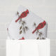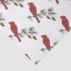 O padrão festivo apresenta aves cardeal vermelhas em galhos verdes em fundo branco