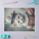 An adorable white cat in a playful clown outfit with heterochromatic eyes—charming, quirky, and perfect for lighthearted, imaginative decoupage pieces.