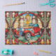Adicione um talento nostálgico aos seus artesanatos com este design Clássico de Vidro Escondido Faux, com uma imagem gerada por IA perfeita para papel de tecido de artesanato de desacoplamento. Esta design artística mostra um carro clássico lindamente renderizado em um estilo de vidro vibrante manchado, combinando a estética retrô com a arte moderna. Ideal para aprimorar móveis, projetos DIY ou empacotamento de presentes, este design traz encanto e sofisticação do eterno para seus esforços criativos