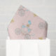 Tema de carruagem com penas e motivo de flor dourada em cores de marfim, rosa bege e azul aqua.