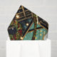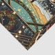 Bonito papel de tecidos de Natal com gráficos de dois cavalos em um celeiro decorado em tapetes de férias e bonito luzes de Natal cintilantes. Estes cavalos são feitos no estilo de pop de quadrinhos de banda desenhada. O lado do saco tem mortes de videira com ferraduras.