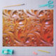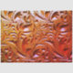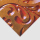 A woodgrain textured carved wood look with a cherry to light oak brown stained appearance. Has a decorative abstract design. Also resembles tooled leather with embossing.