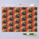 Papel de seda de Casa Assombrada, vai perfeito no seu presente da noite de Halloween! Morcegos pretos, bruxa voando em vassoura e um fantasma em uma casa assombrada em fundo laranja!
