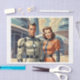 Papel De Seda casal de super-herói para o futurismo retrofuturis