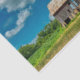 Casca isolada de cinzas com intempéries, sentada sobre uma base de "alambiques" de pedra num campo de fazenda sob papel tecidular ensolarado para material de embrulho de presente e/ou projetos de dissociação.