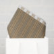 O Design exibe um design com padrão com faixas verticais. Essas faixas variam de cor, incluindo tons de marrom, bege e e creme. Algumas faixas são sólidas, enquanto outras apresentam padrões intrincados com pequenos pontos e formas de diamante. A combinação de diferentes larguras de faixas e padrões cria uma aparência texturizada. Este design pode ser adequado para papel de parede, têxteis ou outras superfícies decorativas, adicionando uma safra ou estética clássica.
