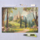Uma ilustração pitoresca de um grande castelo empoleirado sobre uma colina, cercado por flores de primavera vibrantes e árvores exuberantes. Essa cena idílica captura a essência de um cenário mágico de conto de fadas, completo com torres, caminhos cênicos e um pano de fundo tranquilo da floresta.