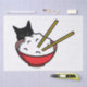 Gato olhando carinhosamente para uma tigela de arroz.