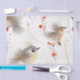 Catchy Bird is een patroon waar een vrolijk klein vogeltje is te zien omringt door kleine rode bloementjes.