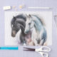 Papel De Seda Cavalos Pretos e Brancos em Aquarela