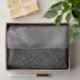 Um céu noturno preto tinta mudando para tons de cinza contém uma galáxia de campo de estrelas douradas. Um papel incomum para embrulhar um presente delicado ou em uma bolsa de presente. Fundo perfeito para scrapbooking ou usado em um projeto de decoupage ou outra arte.