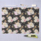 Este papel negro e negrito de tecido floral coordena-se com o saco-presente e a coleção de chás de panela mostrados abaixo. Use-o para embrulhar o obrigado da dama de honra que você dá e pop no saco de presentes correspondente. O padrão floral dos buquês tem bonito rosas, creme, e borboletas amarelas e lírios peruanos laranja e verde neles. Se precisar de itens correspondentes, envie um e-mail para niteowlstudio@gmail.com.