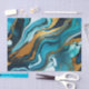 Papel De Seda Chic Elegante azul esverdeado dourado Faux Marble