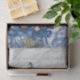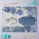 Imagem 2 de 2 para painéis grandes de portas de móveis. "Vintage Chinoiserie Blue White Flower Jar Script Ephemera Decoupage, papel de tecido pesado." Um elegante padrão de colagem da safra azul e branca feito a partir de uma antiga borda do Tóile francesa em azul junto com flores botânicas delfinium com um pássaro, uma típica cerâmica chinesa de gengibre chinesa de chinês, e uma borda de rolagem com um fundo de letras escritas à mão de um roteiro elegante para a caligrafia. Esta bela colagem foi desenhada graficamente pela artista internacionalmente licenciada Audrey Jeanne Roberts, autora.