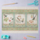 Chinoiserie elegante, antiga e elementos botânicos foram reunidos em uma composição sofisticada que foi desenhada graficamente. Quatro beija-flores botânicas, vermelho e pêssego Vinhas de flor de paixão, orquídeas e ilustrações de flores silvestres são combinadas com uma fronteira tradicional chinesa em laranja, pêssego, azul-safira, verde-menta e branco de marfim. Criada por uma artista e designer internacionalmente licenciada, Audrey Jeanne Roberts, copyright.