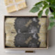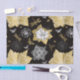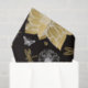 Lindas flores desenhadas à mão de cinzas ouros e borboletas brancas e brancas sobre fundo preto.