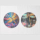 A imagem mostra dois círculos redondos de 12 polegadas com designs de libélula vibrantes e coloridos. O círculo esquerdo representa uma libélula com asas laranja e amarelas em meio a um fundo de flores azuis e rosa. O círculo direito apresenta uma libélula com asas azuis e amarelas sobre um fundo escuro com salpicos de ouro e flores cor-de-rosa. Os detalhes intrincados e cores vívidas tornam estes designs visualmente impressionantes e atraentes círculos de 12 polegadas, designs vibrantes de libélula, libélulas coloridas, asas laranja e amarelas, flores azuis e rosadas, fundo escuro, salpicos dourados e rosa, detalhes intrincados, designs visualmente marcantes, RHDessignos de dois pintos do papo.