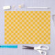 A vibrant orange and beige checkerboard pattern with alternating bright and muted squares, creating a lively and symmetrical design with a warm, energetic tone.