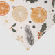 Papel tecidular do estilo Cozy Natal com fatias de laranja secas, ramos de pinheiro e bagas sagradas. As cores quentes são o verde-pinho, o laranja-citrinos e o bege-vintage.