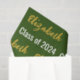 O lenço é verde-escuro. Todos eles têm um padrão de texto para o nome do formando e Classe de 2024. O nome (Mostra: Elizabeth) aparece num guião de ouro elegante (e não em folha). O outro texto é branco. Todo o texto pode ser editado.