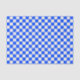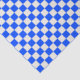 A blue and white checkerboard pattern with alternating squares fills the image, creating a geometric, balanced design with a classic, symmetrical feel.