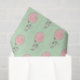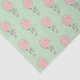 Papel tecidular com um coelho branco, branco, segurando um grande balão cor-de-rosa flutuando no ar. Colocado sobre um fundo verde-claro.