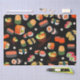 Este design apresenta um belo sushi colorido sobre um fundo preto contrastante.
