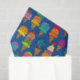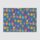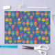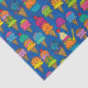 Seu presente será mesmo mais doce quando você o envolve neste papel colorido que caracteriza um teste padrão de deleites do sorvete! Inclui colheres da morango, da baunilha, do limão, do mirtilo, da laranja, e de mais, em cones do sorvete e em pratos, em um fundo azul.