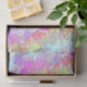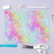 Gradientes de arco-íris pastel híbrido num campo de quadrados energéticos de meia cor.