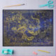 Linda arte digital apresenta dezenas de ilustrações de constelações celestiais incluindo Draco proeminente, em ouro sobre fundo azul azul-estrelado. Mesma imagem em ambos os lados