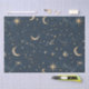 Faça uma viagem às estrelas com este papel de tecido da constelação celestial retrô antigo. Apresentando uma noite estrelada com luas, é o acessório perfeito para entusiastas do espaço e amantes de todas as coisas retrógradas. Ideal para presentes ou uso pessoal.