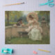 Esta design apresenta uma pintura do artista italiano Federico Andreotti (1847-1930). Mostra uma jovem elegante sentada num banco de pedras num parque. Ela está falando com seu suitor masculino, que está se agachando ao seu lado. Os dois amantes estão a ter uma conversa romântica longe dos olhares chorosos da família e dos amigos. A senhora está vestindo um vestido branco em moda, e ela está segurando um parasol para se proteger do sol. O senhor também está vestindo um traje histórico apropriado à época. No banco ao lado da jovem está um livro, talvez contendo poesia amorosa, e algumas rosas cor-de-rosa, que podem ter sido dadas como um dado pelo seu admirador. Os casais estão cercados por lindas árvores verdes. Há também um lago ou rio correndo pelo parque.