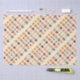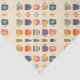 Diversas xícaras coloridas de café e chá com diferentes padrões florais e cardíacos são dispostas em um padrão repetitivo contra fundo branco. Cada xícara apresenta uma combinação única de cores e designs, criando uma exibição vibrante e simétrica.