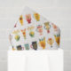 Diversas xícaras coloridas de café e chá com diferentes padrões florais e cardíacos são dispostas em um padrão repetitivo contra fundo branco. Cada xícara apresenta uma combinação única de cores e designs, criando uma exibição vibrante e simétrica.