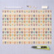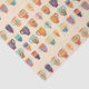 Diversas xícaras coloridas de café e chá com diferentes padrões florais e cardíacos são dispostas em um padrão repetitivo contra fundo branco. Cada xícara apresenta uma combinação única de cores e designs, criando uma exibição vibrante e simétrica.