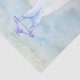Ajustado branco e palhaço longo com tiras de esparguete azuis em um cabide adornado com azul azul sobre fundo azul e molhado de aquarela