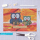 Surpreenda o seu amado com estas duas corujas bonitinhas num fundo laranja com o texto "amor".