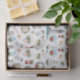 Este design de Natal náutico é cheio de veleiros, faróis, âncoras, boias, rodas de navio, estrelas e conchas, todos decorados com vegetação de férias, bagas, poinsettia e Holly.