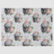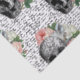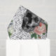 Crânio de rendas com rosas em branco com escrevendo preto.