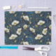 Papel De Seda Creme Celestial Floral e Dourado no Marinho