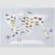 Uma bela ilustração de um mapa mundial com locais de animais nativos ao redor do mundo. Um design ideal para quem ama ilustrações educativas, geografia, animais e mapas etc. Um design perfeito para a decoração infantil, a decoração de quartos para crianças, as ideias de presentes para crianças, os temas de festa de aniversário para crianças, etc.