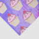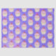 Papel tecidular com ilustração de um cupcake delicioso. Glacé rosa e garoa de chocolate. Um cupcake amarelo e uma framboesa no topo. Meu Deus! O fundo é uma textura de abstrato púrpura com pequenos corações espalhados.