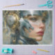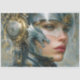 Ignite your imagination with this futuristic fantasy decoupage tissue paper featuring a cybernetic dragon coiled around a fierce warrior woman's helmet. Mechanical gold details, steely blue tones, and sharp precision make this design perfect for steampunk crafts, tech-meets-magic junk journals, mixed media collage art, or statement furniture makeovers. Unleash a new dimension of creativity.
